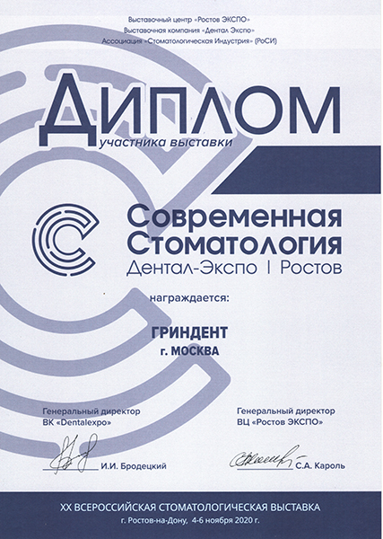 Компания MVK настоящим удостоверяет, что компания GREEN DENT являлась участником выставки «Дентима Краснодар» и была удостоена высокой оценки организатора за актуальность и профессионализм представленной экспозиции.